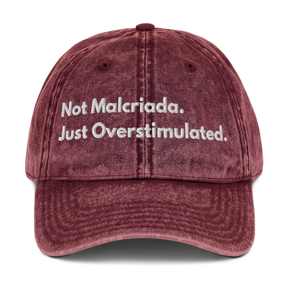This hat, inspired by Camil Aponte's memoir, ¡No Seas Tan Changa!, sets the record straight. Embroidered with "Not Malcriada. Just Overstimulated. It serves as both a boundary and an explanation you wear on your head. This design validates your experience: you are simply navigating a world that is often too loud, too bright, and too demanding.